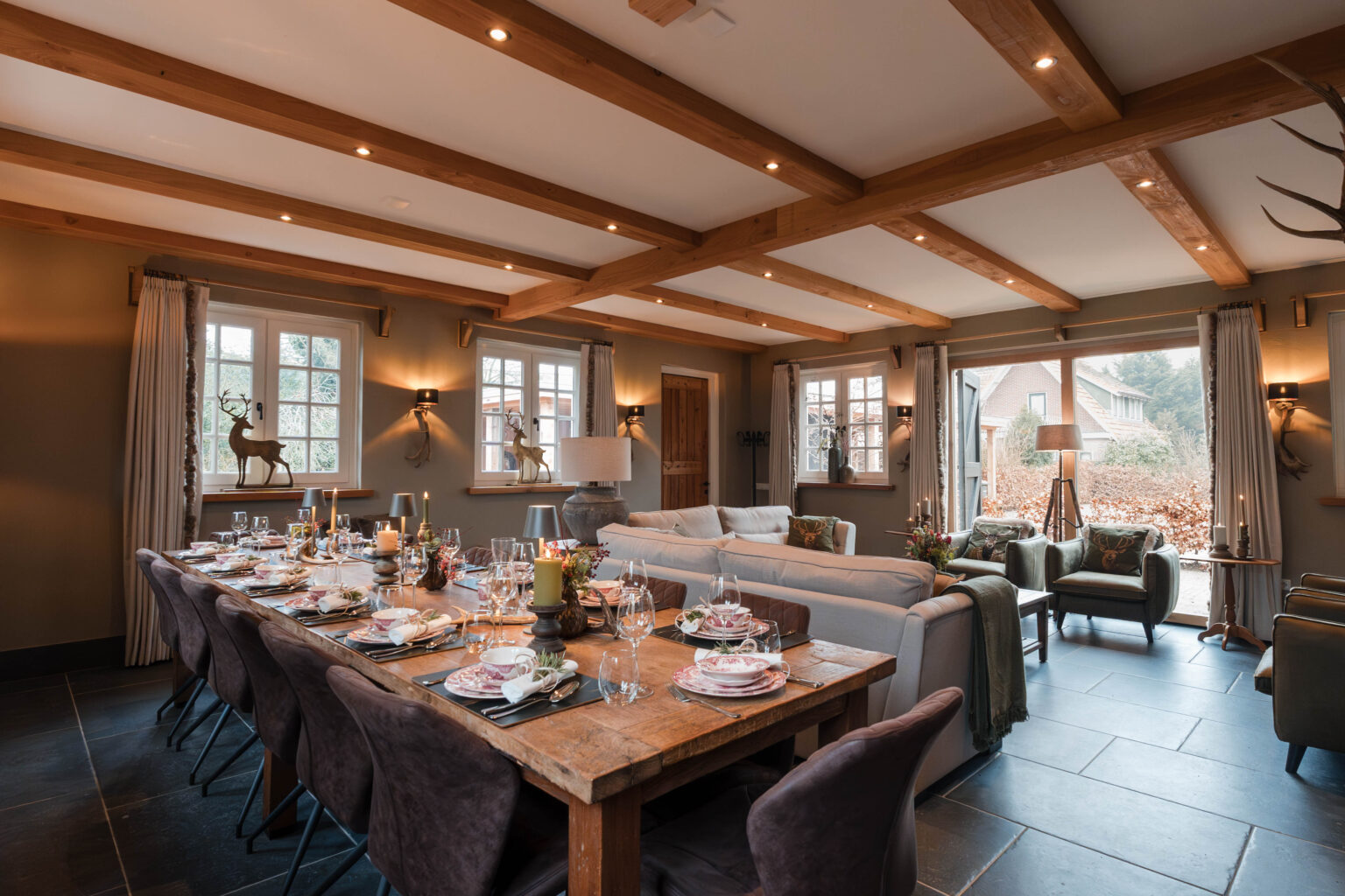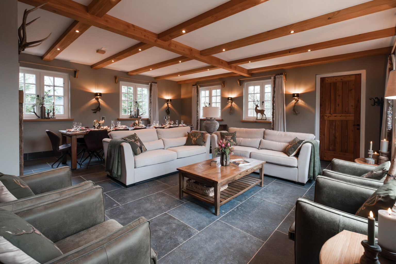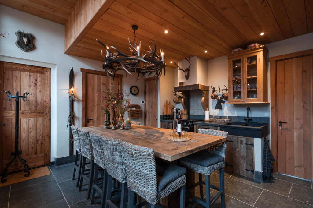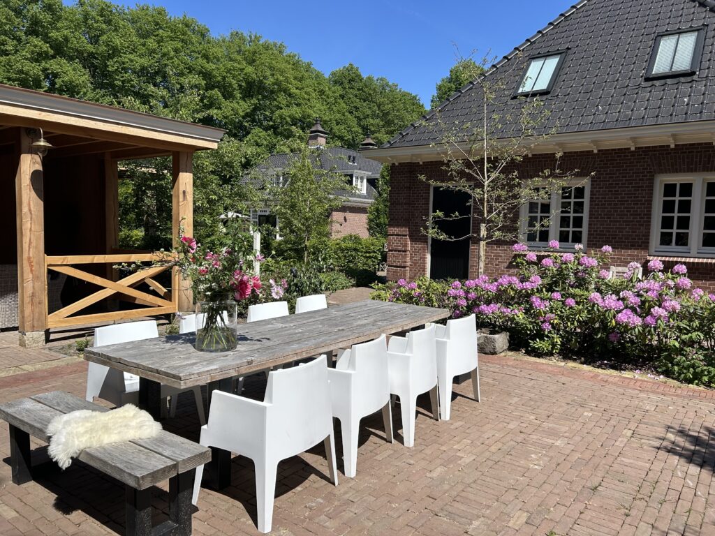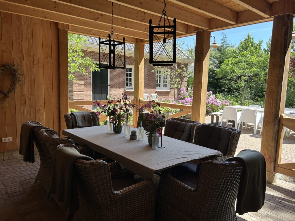 We nemen je graag mee door onze ruime en sfeervolle groepsaccommodatie ’t Koetshuis van Landelijk Twente voor max 14 personen, ideaal voor families, vriendengroepen of zakelijke bijeenkomsten. Deze accommodatie biedt alle comfort en gezelligheid voor een ontspannen verblijf. Via een eigen ingang kom je binnen en stap je direct in de gezellige, authentieke keuken. Deze ruime keuken is volledig ingericht en van alle gemakken voorzien, inclusief een stoere bar voor een gezellige borrel. Aangrenzend vind je de sfeervolle woonkamer met comfortabele banken en een lange eettafel, perfect voor gezamenlijke momenten. De accommodatie beschikt over vijf ruime slaapkamers met comfortabele bedden, verdeeld over de begane grond en de bovenverdieping. Er zijn meerdere aparte toiletten en drie moderne badkamers, elk voorzien van een luxe inloopdouche en een wasbak, zodat iedereen voldoende ruimte en privacy heeft. Buiten geniet je van een eigen terras met stijlvol buitenmeubilair, een ruime landelijke veranda waar je in alle rust kunt ontspannen en het prachtige Twentse landschap in je op kunt nemen. Alles is nieuw en ingericht in dezelfde warme, landelijke stijl als onze andere accommodaties. De bedden zijn opgemaakt, de handdoeken liggen klaar en de koffie staat voor je klaar. Hier voel je je direct thuis!